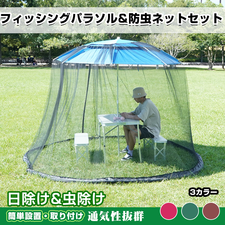 フィッシングパラソル ガーデンパラソル 防虫ネット セット 日よけ 虫除け 高さ調整 角度調整 パラソル 専属ペグつき キャンプ フィッシング od486 od485
