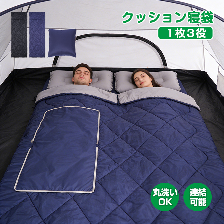 クッション寝袋 クッションシュラフ 寝袋 クッション シュラフ 連結 200cm 布団 ブランケット ファスナー 車中泊 キャンプ アウトドア 軽量 洗える 大きめ