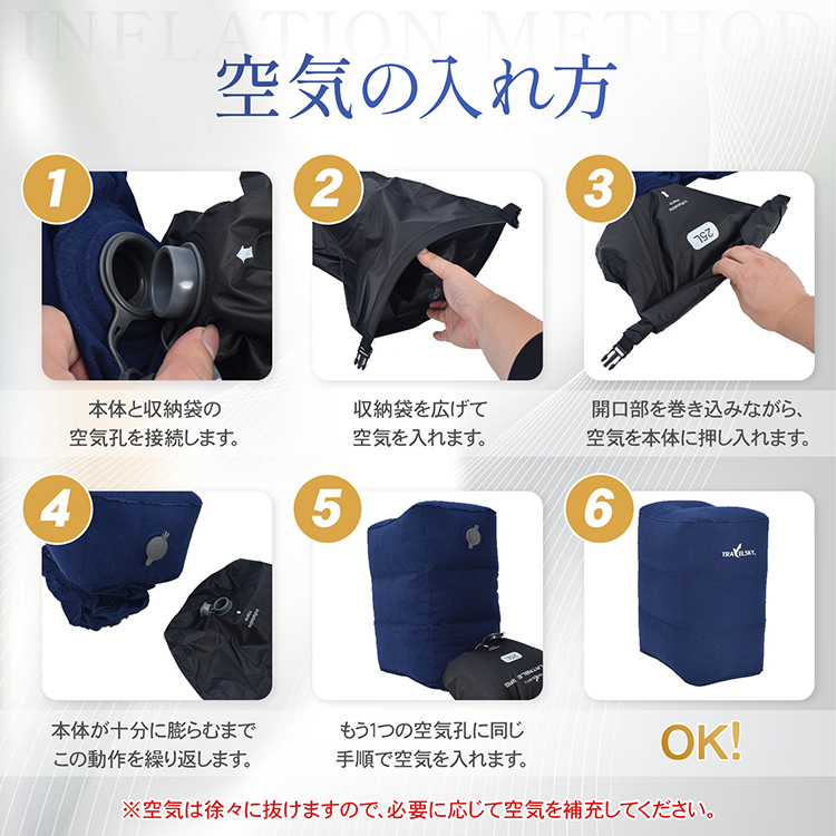 ■ 収納袋で簡単充填エアフットレスト
