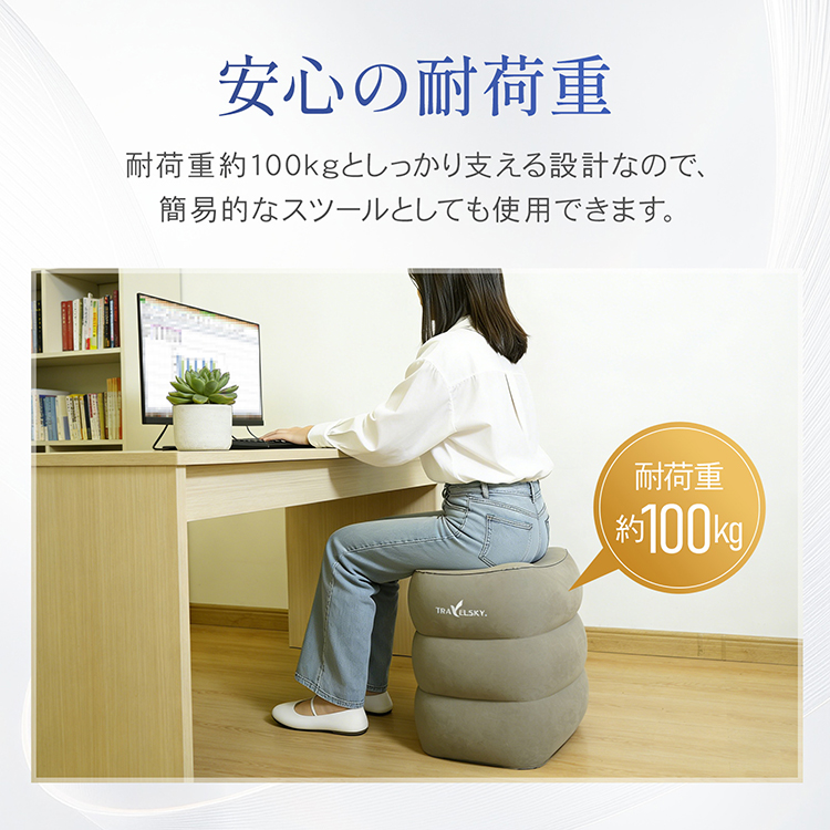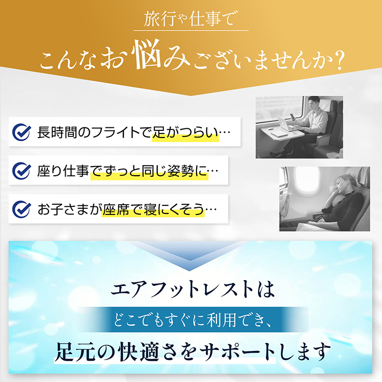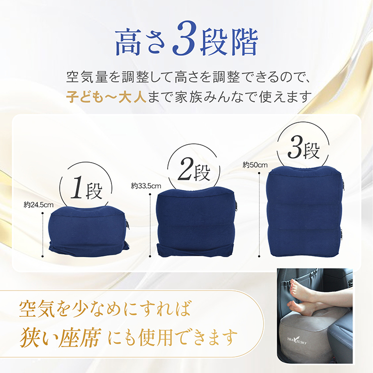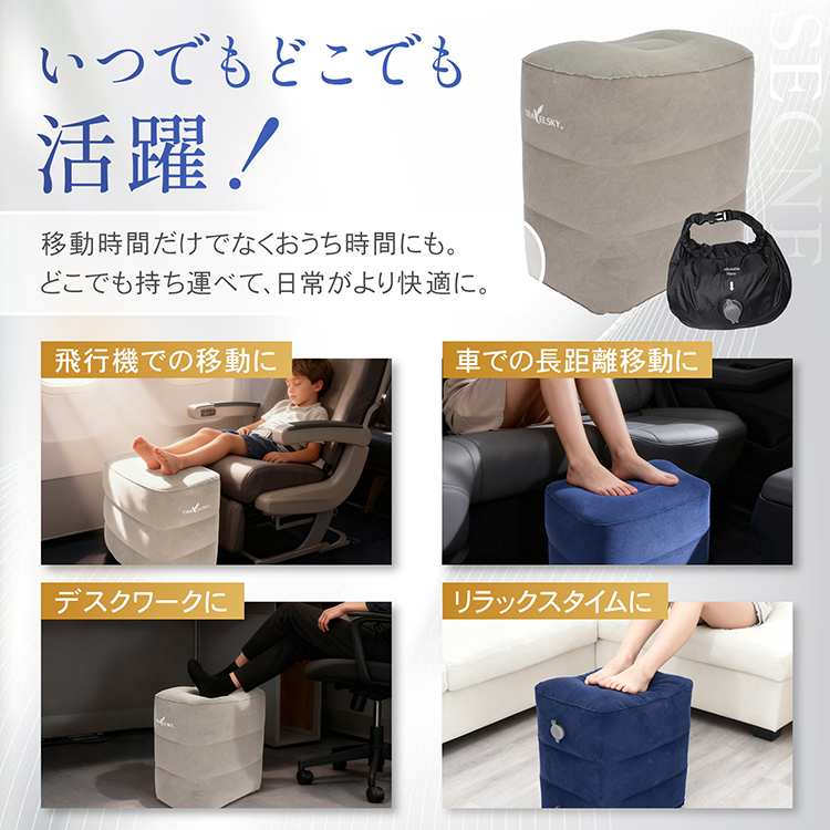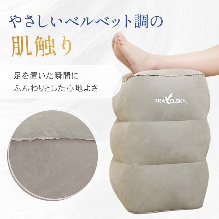 エアフットレスト 足置き 高さ調節 持ち運び 折り畳み 収納袋 空気入れ ポンプ不要 フットレスト オットマン エアークッション クッション 足枕 飛行機 車 高速