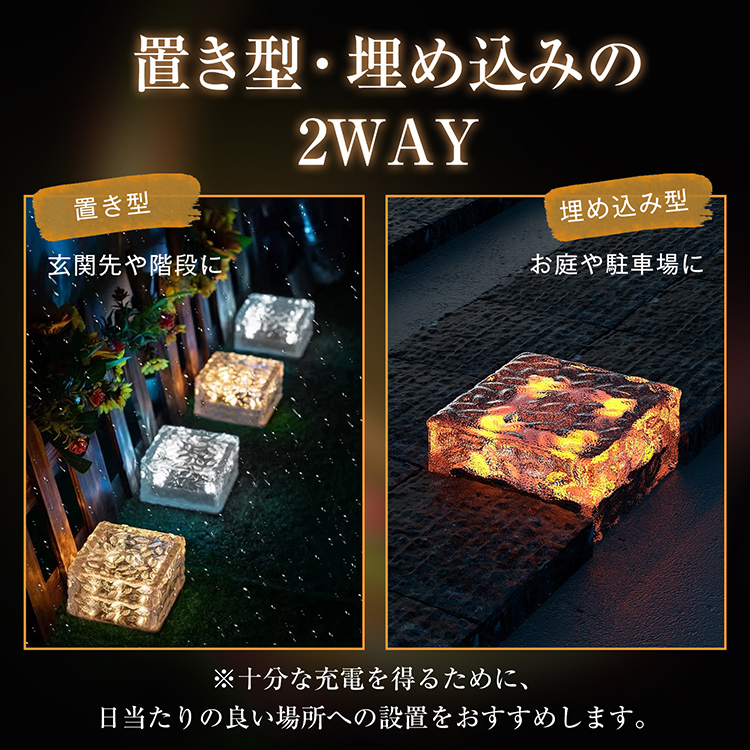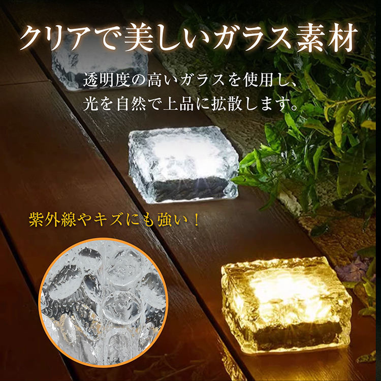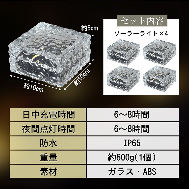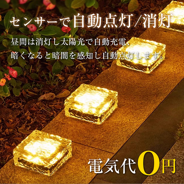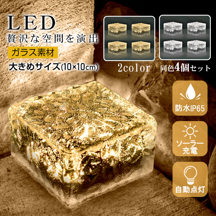 ソーラーライト LED ライト 同色 4個セット 10cm ガーデンライト ガラス素材 屋外 照明 ソーラー 充電 防水 IP65 センサー 庭 玄関 階段 おしゃれ 外灯 置き型