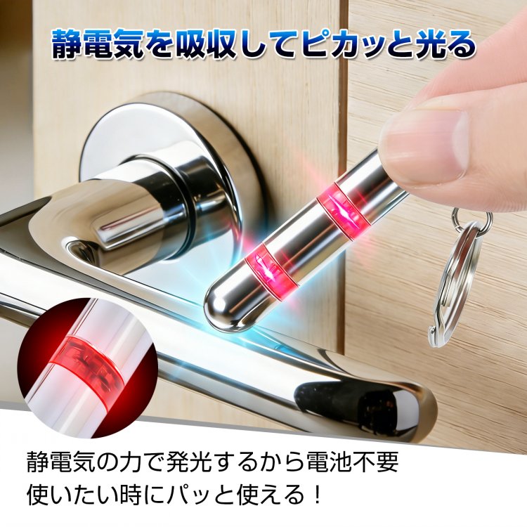 静電気除去キーホルダー 光る ライト 静電気 静電気除去グッズ 静電気防止スティック 静電気防止 静電気対策 静電気除去 キーホルダー 発光 触る 簡単 除去 除電