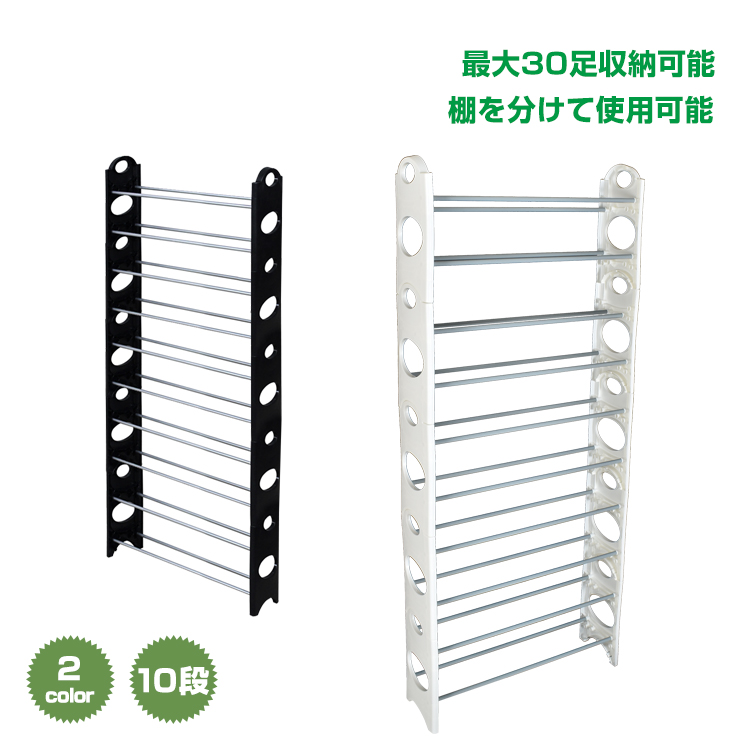 シューズラック スリム 靴箱 10段 30足収納 下駄箱 整理 シューズボックス 省スペース 薄型 組み立て 分割可 玄関 簡易靴箱 ブーツも収納可能 zk248