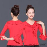 トップスフラメンコ衣装Tシャツカットソーシャツ七分丈無地社交ダンスラテンダンスダンス衣装ステージ衣装コーラス衣装ミカドレスodt1-yzt