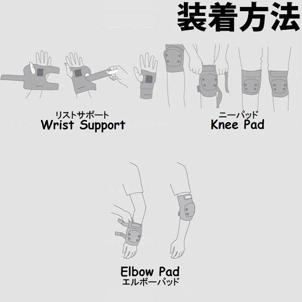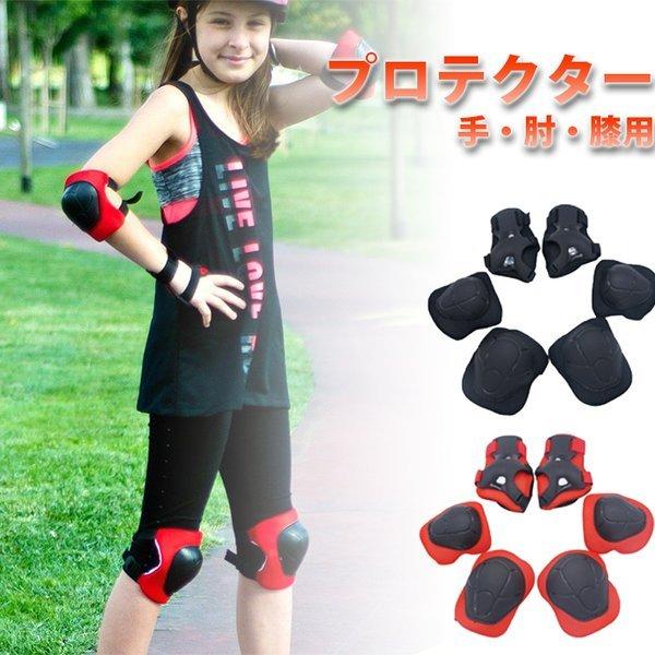 プロテクター 子供用 6点セット 保護パッド 手首 肘 膝 サポーター 自転車 キックボード スケートボード ローラースケート ###プロテクター021-###