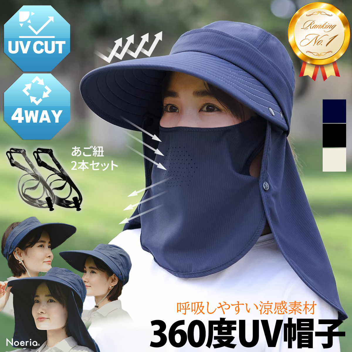 ・農作業、アウトドア等に便利な4way日よけ帽子。紫外線、熱中症対策に。