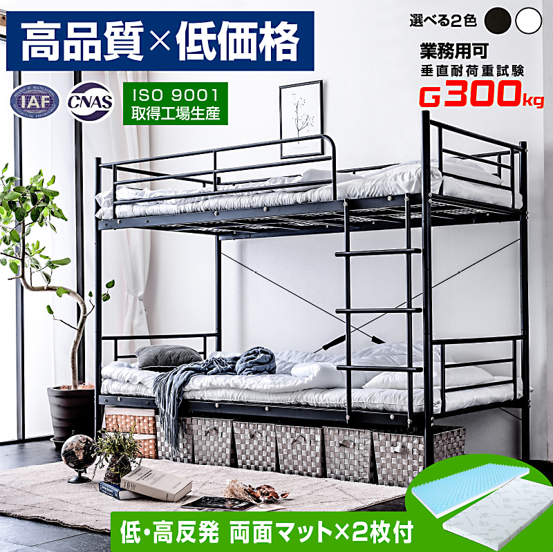 高品質低価格 低・高反発両面マットレス2枚付 耐荷重 300kg 二段ベッド パイプ2段ベッド ムーン2-ART スチール 耐震 社宅 寮