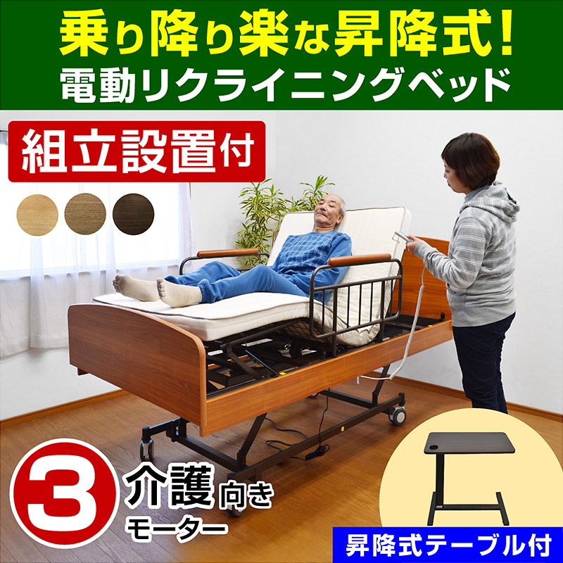 | セット 内容 | 4点セット(ベッド本体、専用マットレス、コントローラー、左右の手すり)+昇降式テーブル |