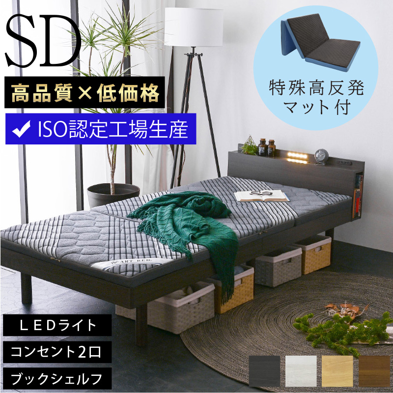 | 当店の おすすめ ポイント | ・あると便利!LED照明付き ・すのこ板に幅広タイプが追加!しっかり支えて強度がアップ! ・枕元に小物等が置ける宮棚付き ・スマホ充電OK!2口コンセント付き ・ホコリが入りにくいスライド式コンセント ・通気性が良いスノコ仕様 ・3段階の高さ調整有り ・豊富なサイズ:シングル、セミダブル、ダブル ・2台購入でキングサイズに |