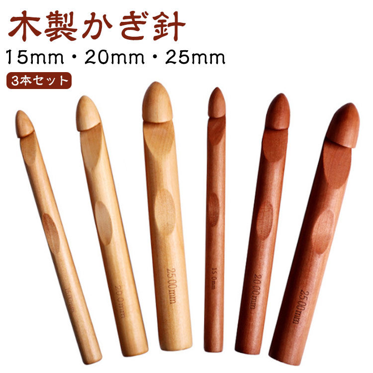 | 【木製かぎ針】【3本セット】【15mm・20mm・25mm】 【使いやすいかぎ針】15mm・20mm・25mmサイズが揃っていて、手持ちの糸に合わせて使い分けができるので、とても便利です。 【様々な場合に合う】太い毛糸の帽子、スヌード、靴下、網、マット、サイズ大きいセーター、カーディガン、ジャケットなど作品に便利のジャンボかぎ針です。 滑らかい先端なので、糸が引っかかったり糸を割れたりしません。手触りが良いです、編み込み効率を高めることができます。 しっかり握れるので余分な力をかけずに編むことができ、手が疲れにくい設計です。人間工学に基づいたハンドルで不快感なく長くかぎ針編みが可能です。 | |