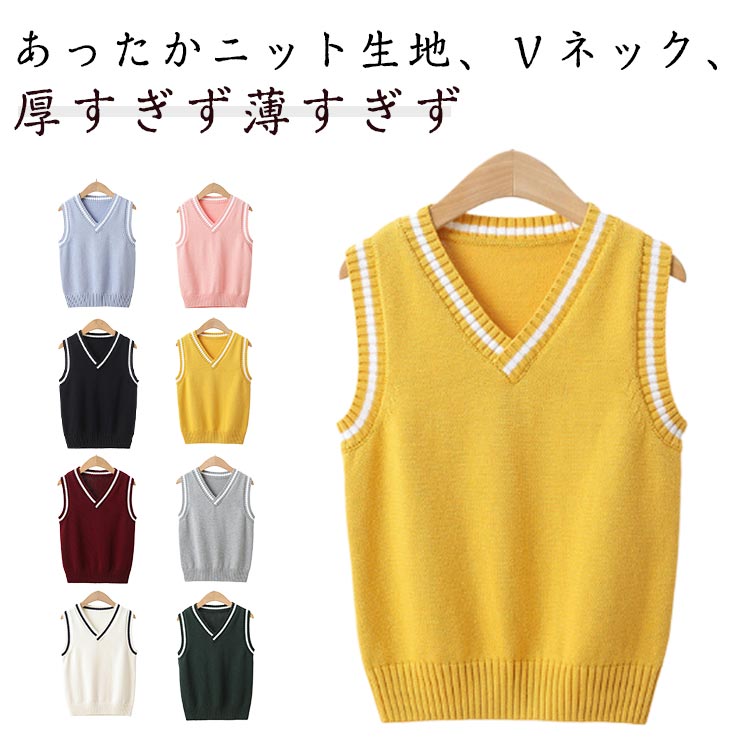 | あったかニット生地、Vネック、厚すぎず薄すぎず ニットスクールベストはシャツの上、制服やジャケットのインナにも適用します。 シンプルで無地のデザインなので男の子とも女の子ともご利用いただきます。 冬の防寒のインナーとしても、シャツや制服の下、ワンピース、洋服、ワイシャツ、スーツなどいろんなトップスとも相性いいです。 【適用シーン】通園、通学の普段着、結婚式、パーティー、発表会、寒い季節の防寒着、カジュアルからフォーマルの場合とも使いやすいキッズスクールベスト。 | |