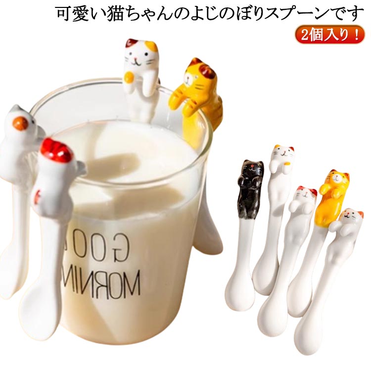 | 2個入り! 可愛い猫ちゃんのよじのぼりスプーンです。 猫ちゃんのお手手でマグカップのフチにかけられます。 カップのフチによじ登ったニャンコにほっこり癒されます。 楽しいティータイムの演出にいかがですか♪ | |