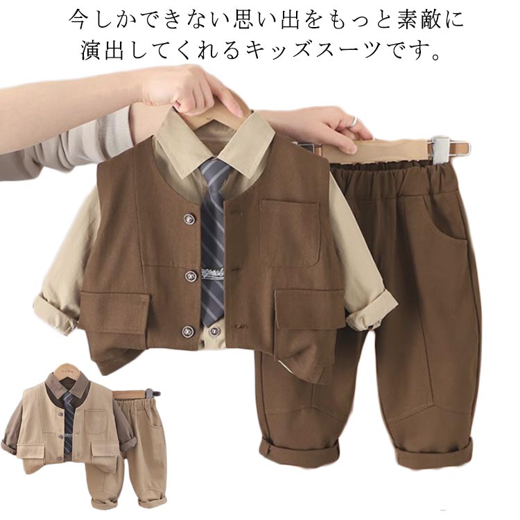 | 今しかできない思い出をもっと素敵に演出してくれるキッズスーツです。 商品内容:ベスト+シャツ+ネクタイ+パンツ 春は「入学式・卒業式」秋には「七五三」冬だって、ちょっぴりおしゃれな「レストランで家族でお食事」に。 結婚式やお正月「親戚の集まり」にもひとつお兄さんになった姿を見せたいから。 ? | |