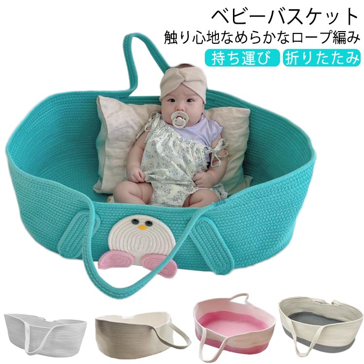 | ベビーバスケット 触り心地なめらかなロープ編み 赤ちゃんがゆっくりお休みできる♪ ・柔らかいロープ編み しっかり自立する強度で、さわり心地はなめらか。ロープ編みタイプなので、赤ちゃんの手や足が当たっても安心。 ・ちょっとしたお昼寝や一人遊びに。映え写真も間違いなしの、インテリアの邪魔をしないデザインです。 ・使わない時は折りたたんで、コンパクトに収納可能。持ち手付きで、持ち運びもラクラク。 | |