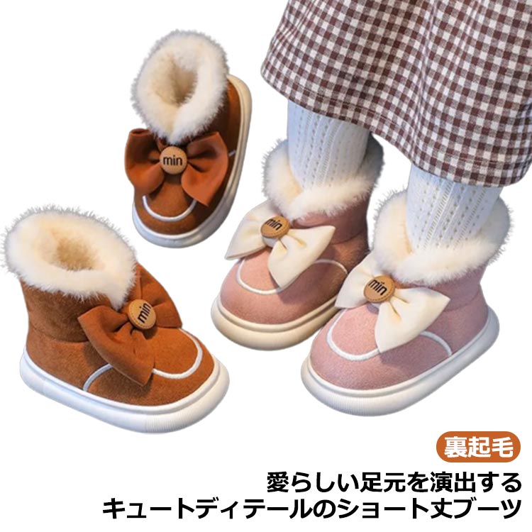 | 愛らしい足元を演出するキュートディテールのショート丈ブーツ。 内側にボアが入ったあたたかいブーツは底冷えからお子様の足を守ってくれるので冬でも思いっきり外遊びを楽しめます。 ファーにリボンという、女の子たちのおしゃれ心をくすぐるデザインが魅力! かわいらしさを秋冬キッズコーデに添えてくれます。 | |