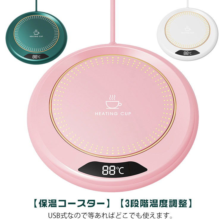 | 【保温コースター】【3段階温度調整】USB式なので等あればどこでも使えます。 55℃、65℃、75℃と三段階の温度設定のできるカップウォーマーです。 USBタイプで使用できるコスパに優れたコーヒーウォーマーです。 ガラス製、紙容器、プラスチック、ホーロー・陶磁器、パンやお菓子の保温にも使えます。 持ち運び可能な小型・軽量のシンプルタイプ。 ボタンを押すだけで設定温度が液晶で見えるのでとても分かりやすいです。 8時間経てば自動で電源が切れるのでうっかりさんも大丈夫! 55℃、65℃、75℃と切り替えスイッチで温度の調整ができます。もう一度押すと電源は切れます。 | |