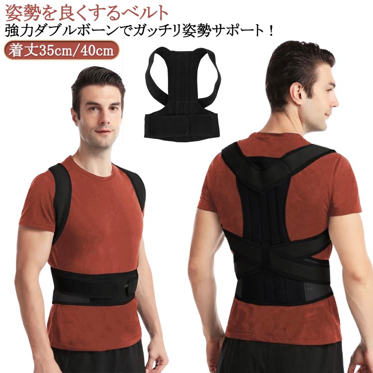 | 着丈35cm/40cm 姿勢を良くするベルト 強力ダブルボーンでガッチリ姿勢サポート! シンプルな構造で、装着かんたん、無理なく、正しい姿勢へサポート猫背矯正ベルト 【背中全体をサポート】 肩・脇の下から後ろへ引っ張るクロスベルトがパワフルに腰・背中を伸ばします。 【強力ボーンでサポート】 2本の形状記憶ロングボーンがバランスよく正しい姿勢をサポート。 【肩のカーブにフィット】 体の線に滑らかにフィットするY字クロスベルト。快適な装着感。 【強力面ファスナー】 ガッチリ固定!強力幅広面ファスナーで抜群の安定感。 【通気性抜群】 快適なメッシュ素材で蒸れることなく、一年中快適に着用できます。 | |