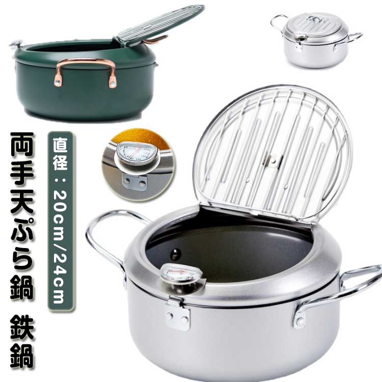 | 【レトロ設計】デザイン性が強く、近年流行りのレトロ設計にしました。味わい深いアンティークグリーンをメインカラーを使用、取っ手は赤銅色で、相性がよく、とてもおしゃれで、懐かしさを感じられます。 【油切りラック】フタの裏側には油切りラックがついておりますので、別途用意する必要はいりません。切った油はそのまま鍋に流せるので、とてもエコです。揚げながらも油切りできますので、便利で使い心地が良いです。 【丸洗い可能】鍋、蓋、温度計、油切りラックの四つのパーツに分解できます。簡単に分解して洗えるので大変衛生的です。いつも綺麗のままに保て、長く使用できます。 【注ぎ口】注ぎ口の設計で、使い切った油を油ポットに移す時にとても使いやすいです。一回の使用は大量の油を使ってるのでそのまま捨てるのはもったいないですね。油ポットあれば繰り返して使用できますから、とてもエコで、環境にやさしいです。 | |