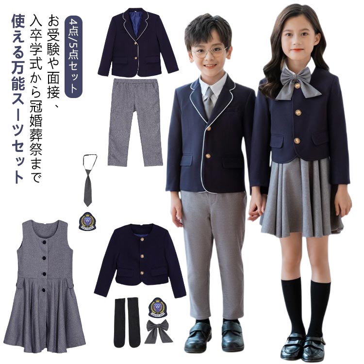 | お受験や面接、入卒学式から冠婚葬祭まで使える万能スーツセット。 お子様のお洒落さと機能を重視したデザインで、結婚式、入園式、お祝いなどのフォーマルシーンはもちろん、発表会の衣装としても! イギリス風のデザイン、周りと差をつけるのが嬉しいポイント。 お子様の晴れ舞台に大活躍間違いなしの男の子/女の子スーツ! | |