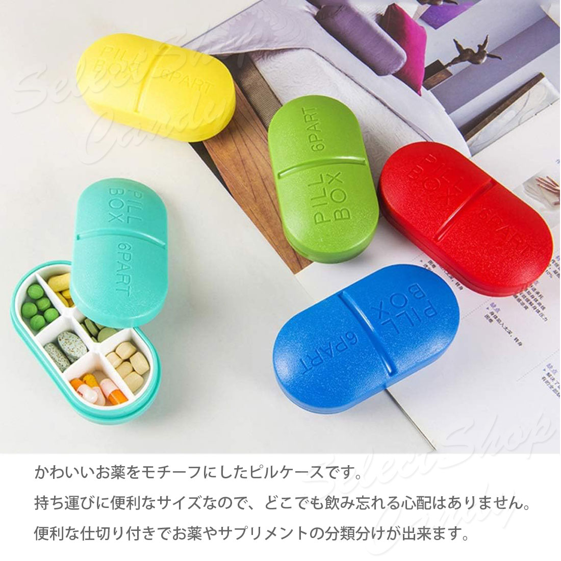 | 詳細 | ■6つに仕切られたカプセル型の薬をモチーフに作られたピルケース ■薬・サプリ・アクセサリー・小物入れとして活躍 ■外出先でも薬やサプリを安心して携帯できる便利グッズ ■スタイリッシュな見た目で、持ち歩きもおしゃれに ■おしゃれでかわいいから、プレゼントにも喜ばれるアイテム。 ※弊社では他サイトでも販売しております。 |