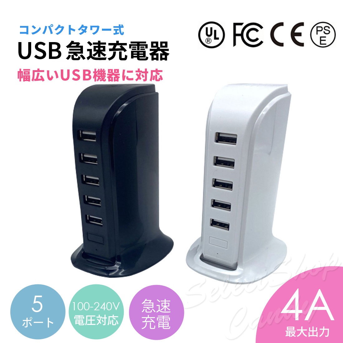 | 詳細 | ■5台までのモバイル機器を一度に充電。スマホ/タブレット/モバイルルーター/モバイルバッテリーなどに■ ■最適な電流を自動で検知して出力するオートICコントロール■ ■最大4Aの高出力で急速充電!パソコンで充電するよりも3.5倍速く充電が可能■ ■海外でも使用できる100V-240Vに対応■ ■家でもオフィスでも!充電ステーションに■ ※本製品説明に記載のすべての数値はメーカー公称の理論値であり、実際の充電環境により異なります。 |