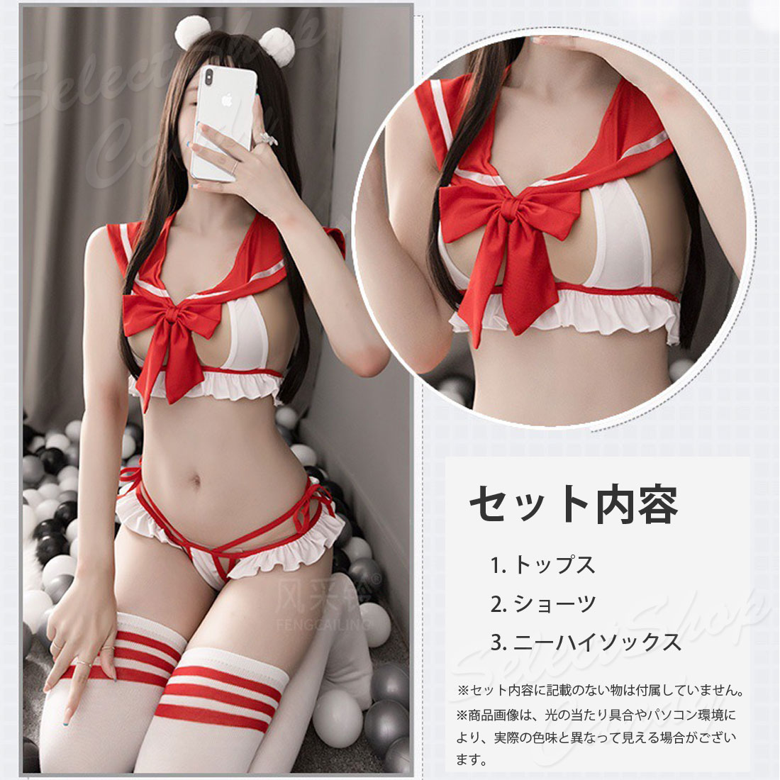 | 詳細 | 【セット内容】 トップス+ショーツ+ニーハイソックス ※弊社では他サイトでも販売しております。 |