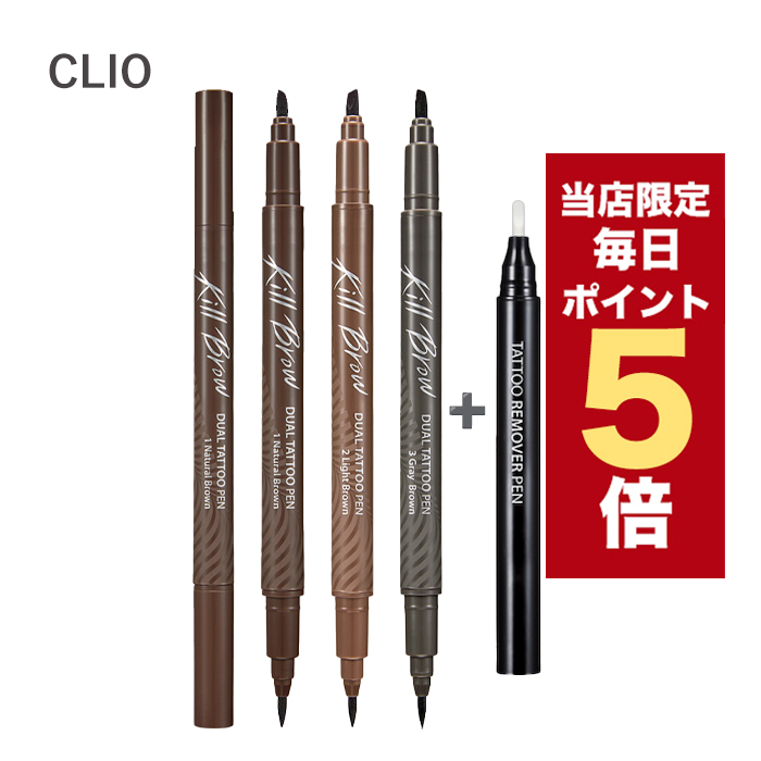 【商品入替のため特価】韓国コスメ アイブロウ CLIO クリオ アイブロウ キル ブロウ デュアル タトゥーペン 全3色 ※リムーバー付き 眉ティント 眉マスカラ