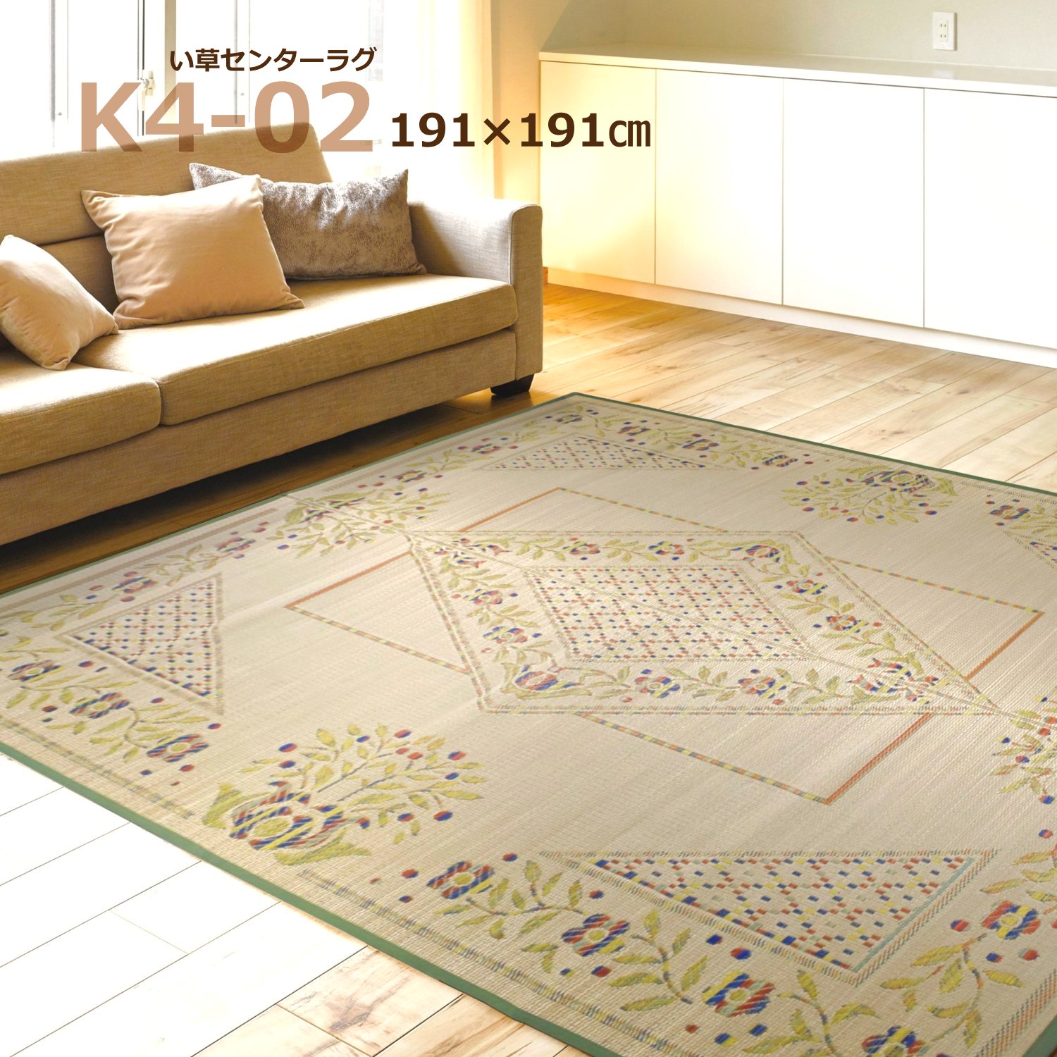 い草ラグ 2畳 191×191cm (K4-02) マルチカラー グリーン 不織布裏貼り カーペット 夏用 夏ラグ ラグ ラグマット