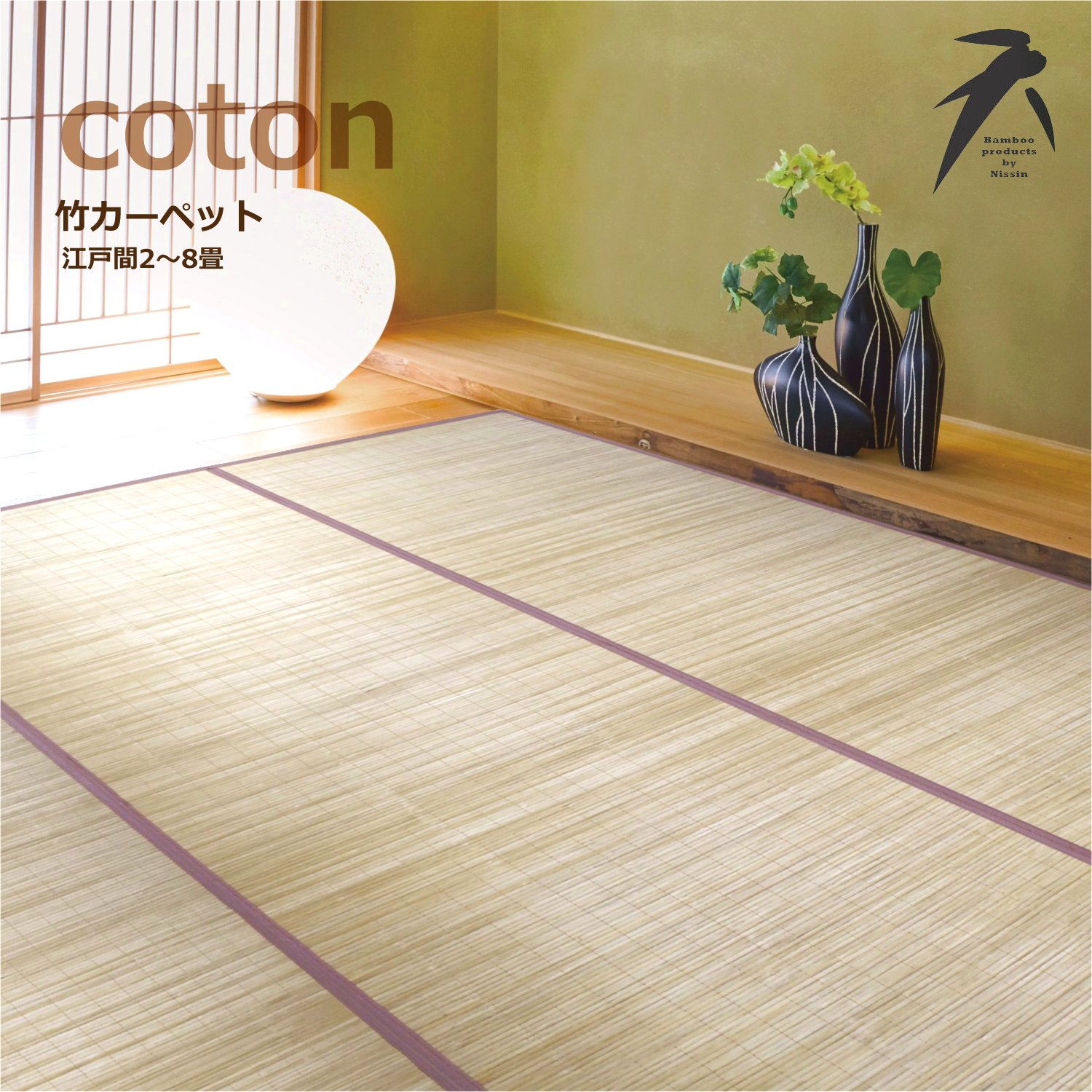 竹カーペット 上敷き ござ 江戸間 3畳 174×261cm(コトン) ラグ 竹敷物 天然素材 夏用 アジアン バンブー 夏用ラグ 夏ラグ ラグマット
