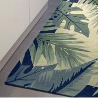 玄関マット 屋内 80×140cm (オアシス) 洗える 大きめ リーフ柄 ブルー グリーン シェニール ゴブラン織り 滑り止め加工 マット 大判