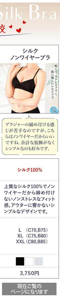 「シルク歴の長い方はお肌がキレイ」とお客様から教えていただき、肌着はシルク、パジャマもシルクで過ごす毎日は、気持ちが穏やかになれて本当に気持ちいいですね。