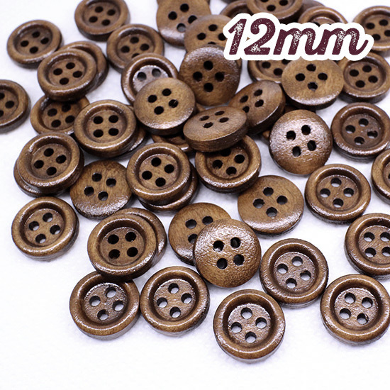 ウッドボタン シンプル 12mm 20個(ブラウン/つやあり) ab-249b