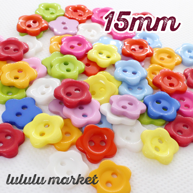 プラスチックボタン カラフル花型 15mm ミックス50個 ab-354