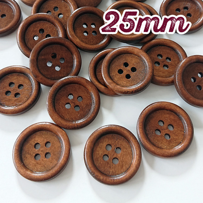 ダークブラウンの25mmウッドボタン。