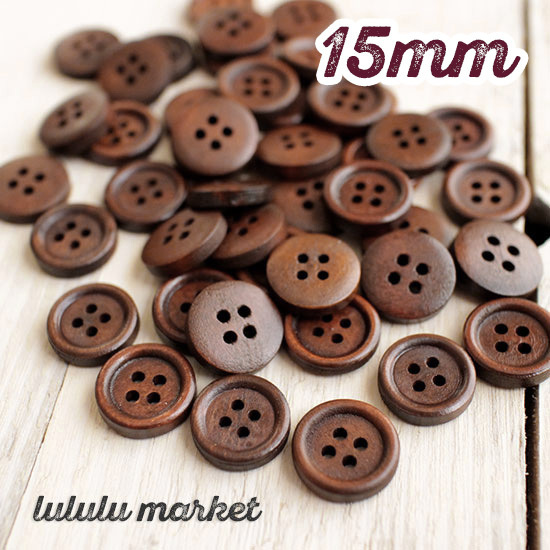 ウッドボタン シンプル 15mm 30個(ダークブラウン) ar-093