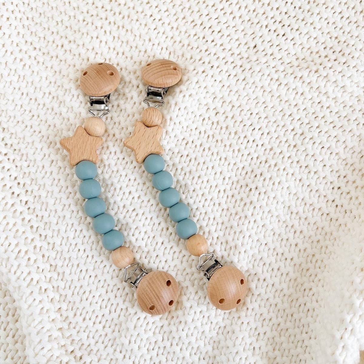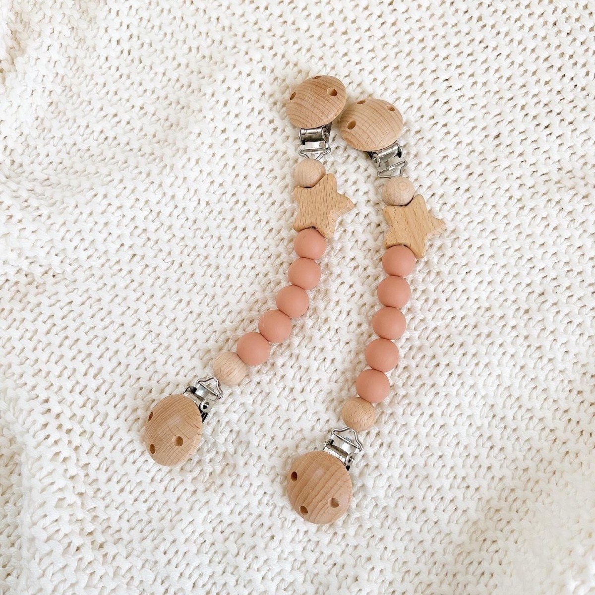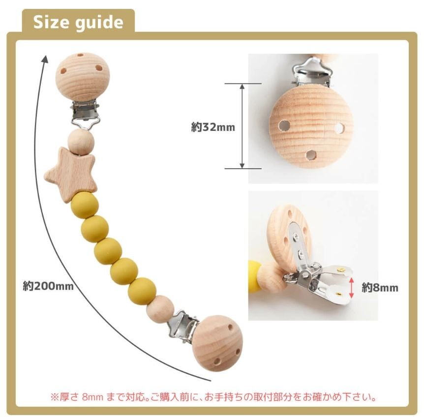 ブランケットやタオルがずり落ちるのを防ぐかわいいクリップ。ベビーに優しい天然木とシリコン使用、木製の星がポイントです。