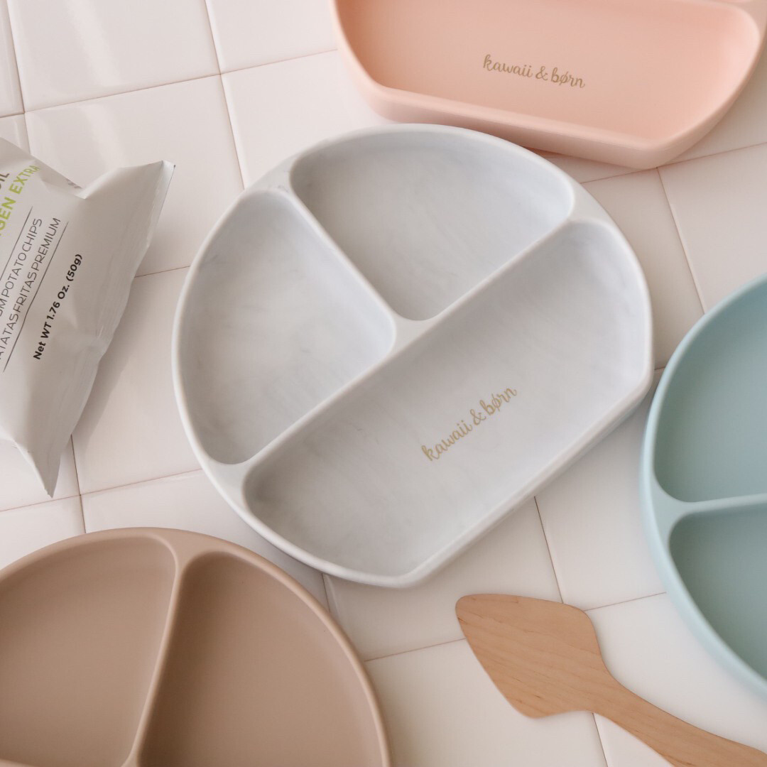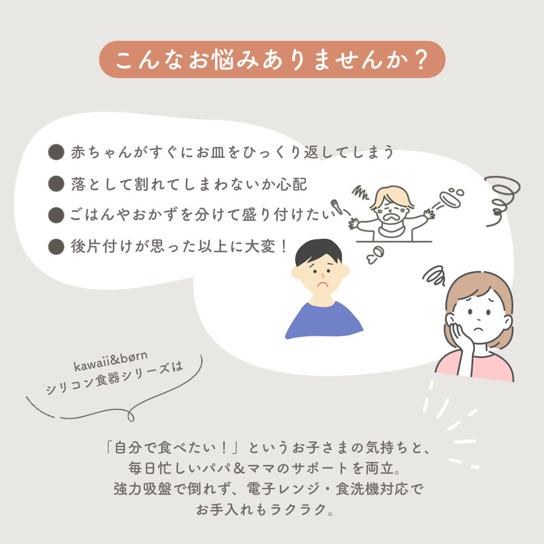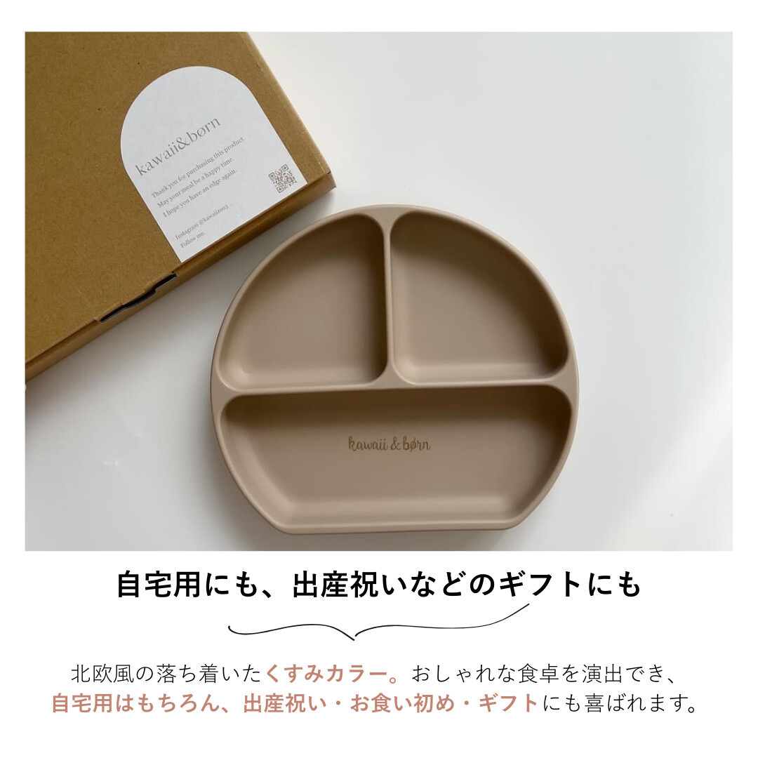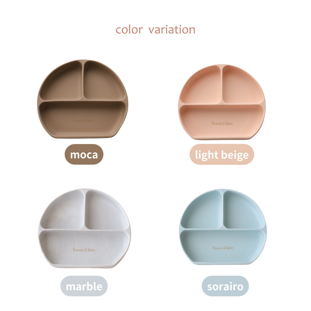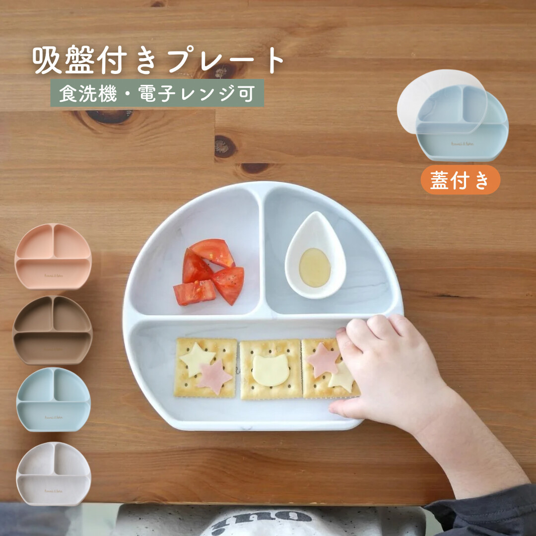 ベビー食器 吸盤付き kawaii&born シリコンプレート 離乳食 ピタッとくっつくお皿 子供 キッズ 食器 無地 ロゴ入り 蓋付き KawaiiZou