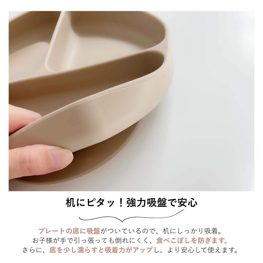 吸盤付きでテーブルにしっかり固定できるシリコンプレートです。