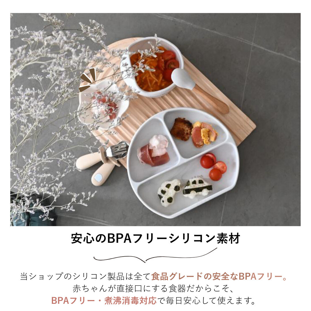 毎日の食事シーンで安心して使えるベビー食器です。