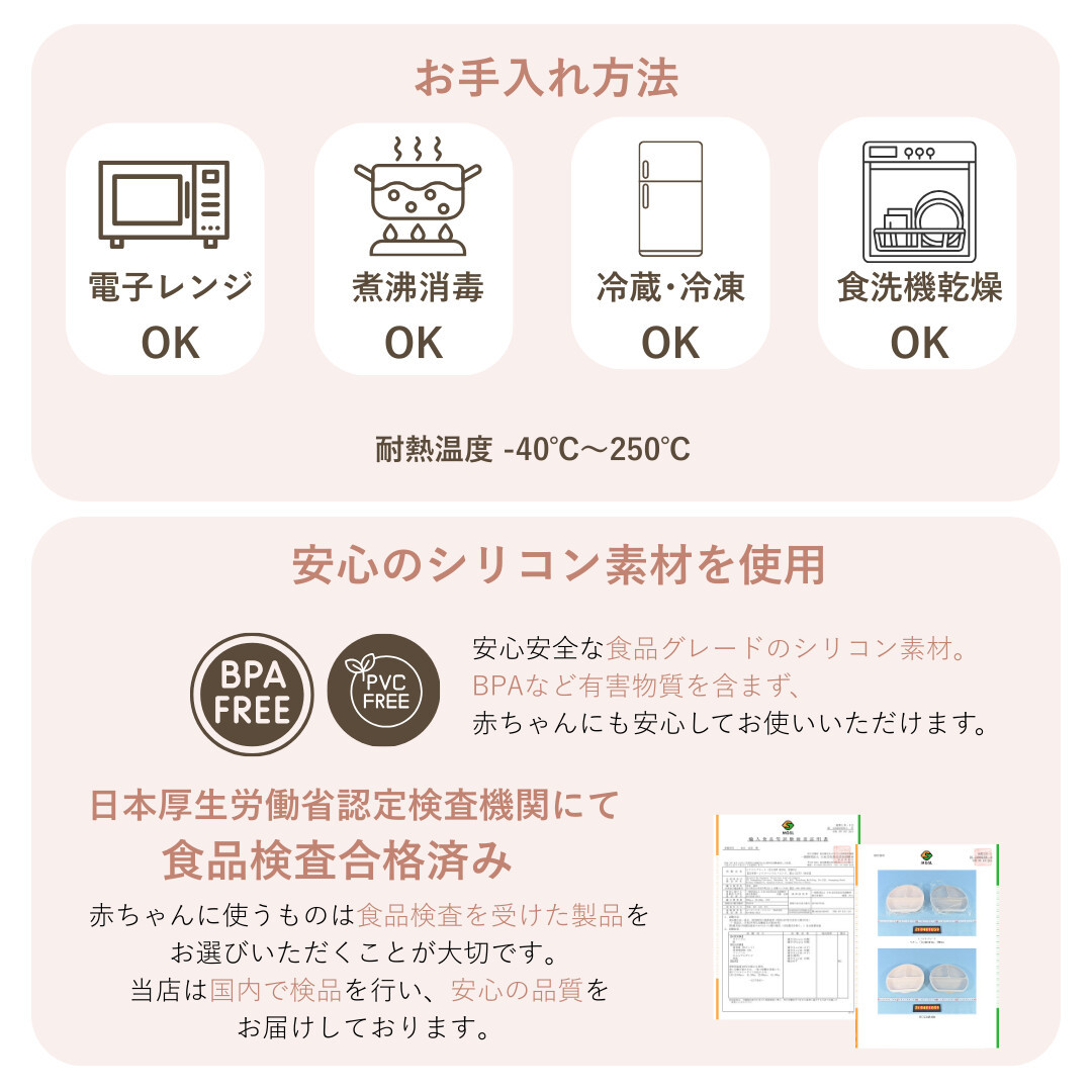 電子レンジ・食洗器・冷凍庫・煮沸消毒に対応。