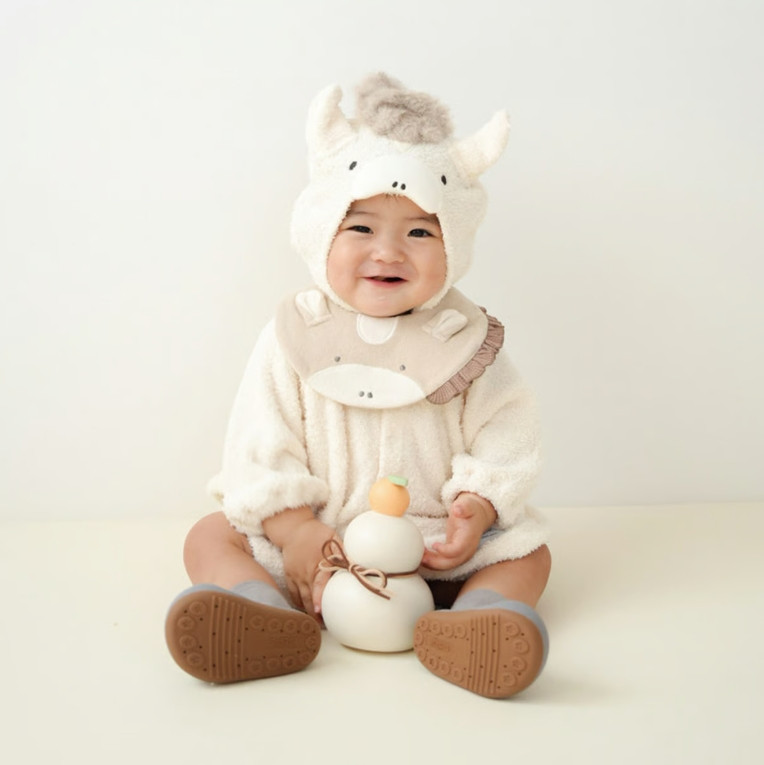 mocmof なりきり干支ケープ 2026年 干支 お馬さん ホワイト ベージュ 変身 コスプレ ベビー 子供服 622-650012 モクモフ