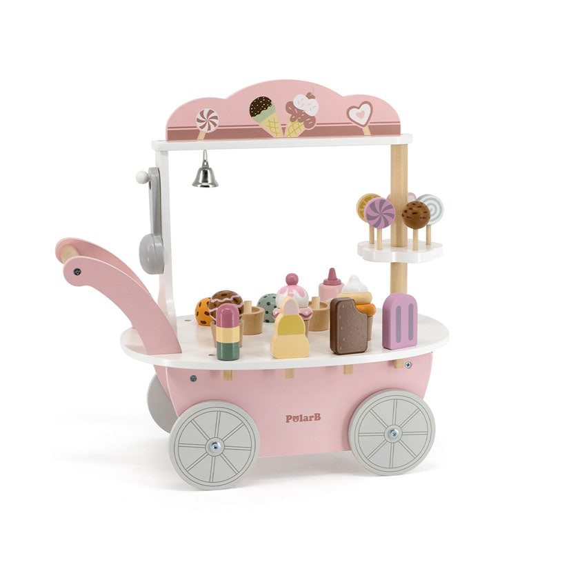 PolarB アイスワゴン 木製おままごと ピンク アイスクリーム屋 ごっこ遊び お店屋さん 女の子 木のおもちゃ ポーラービー