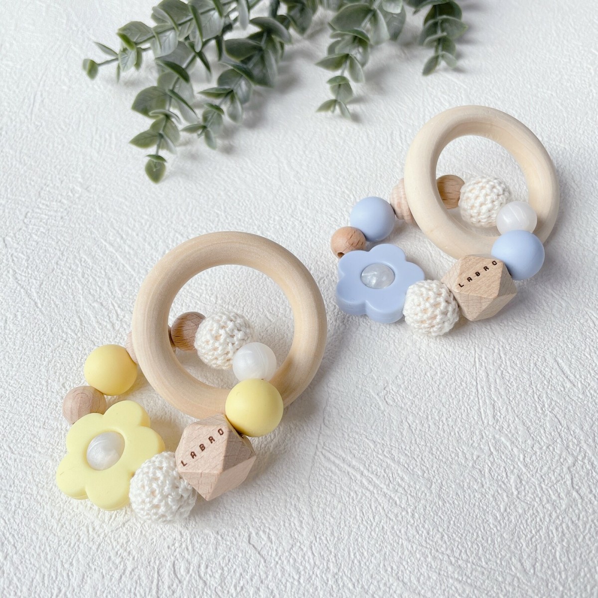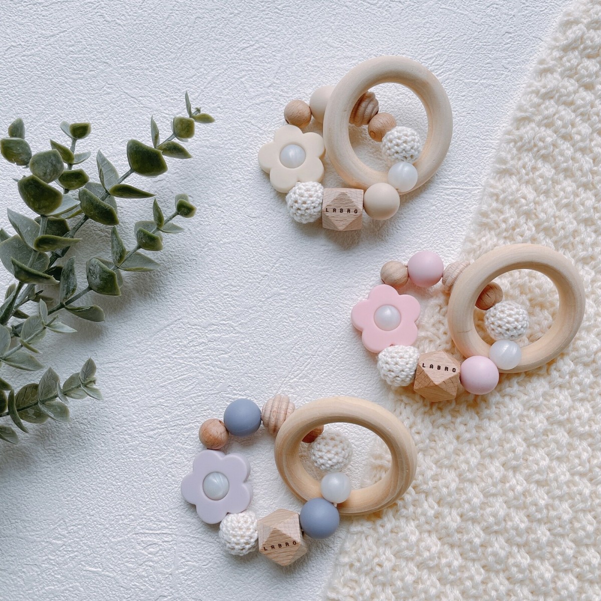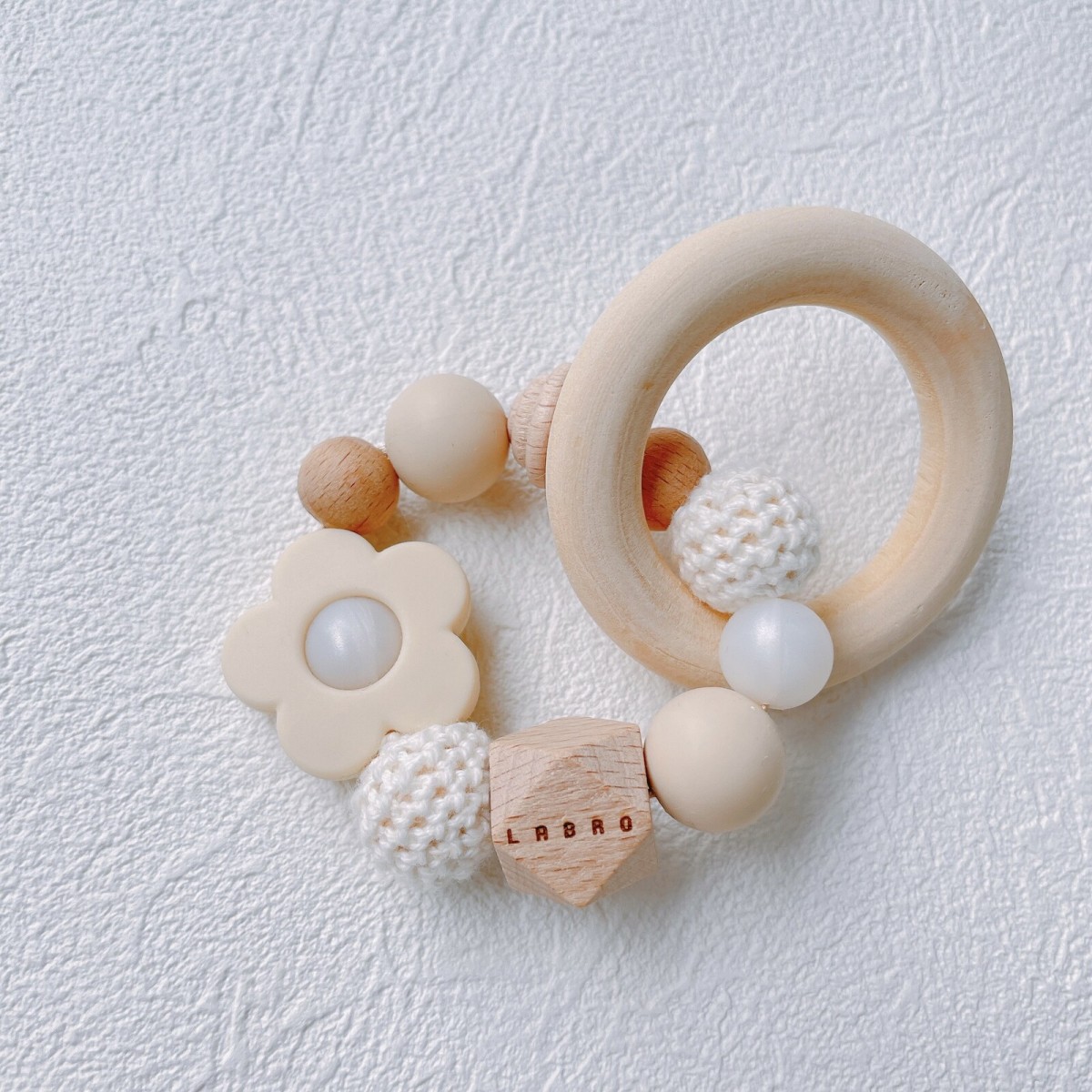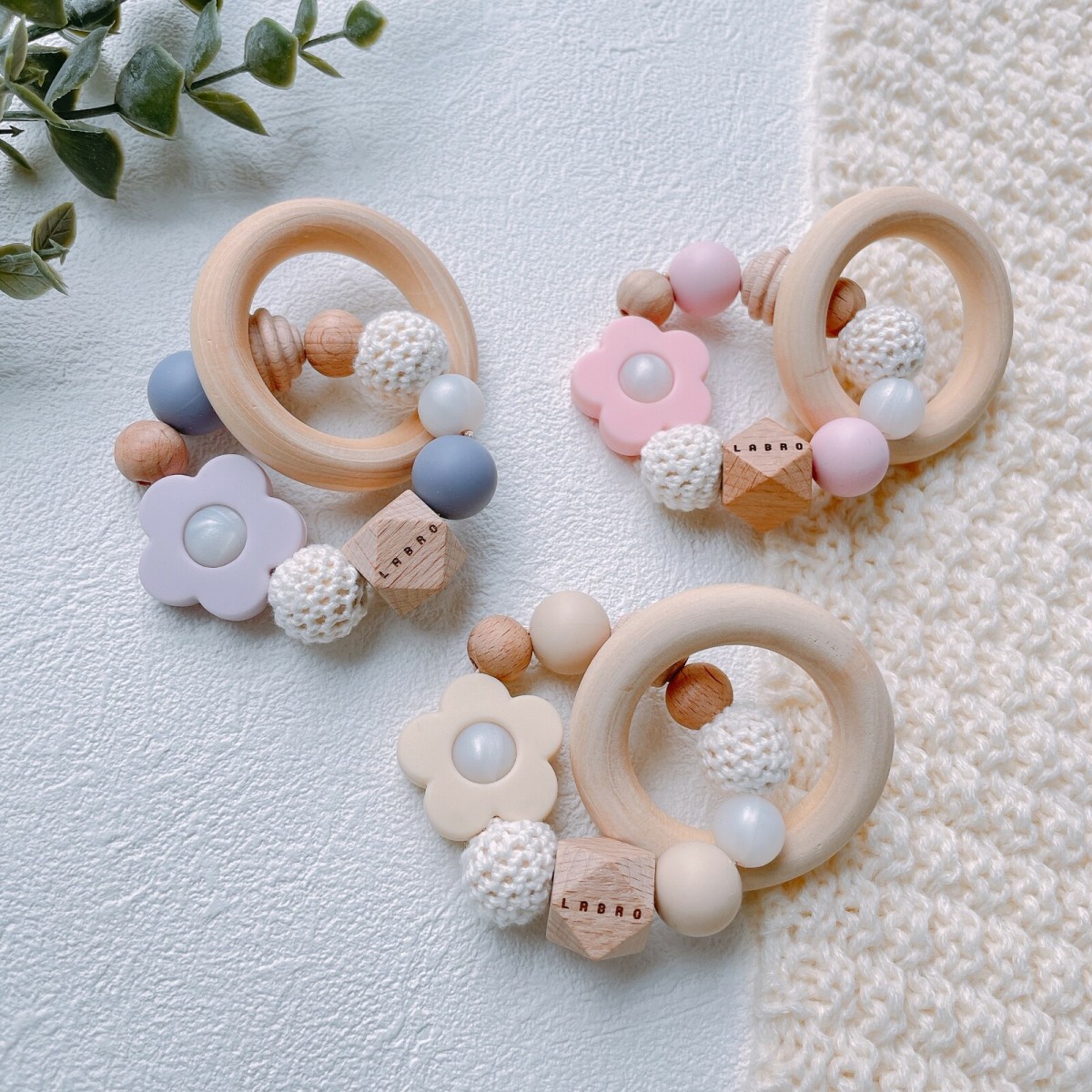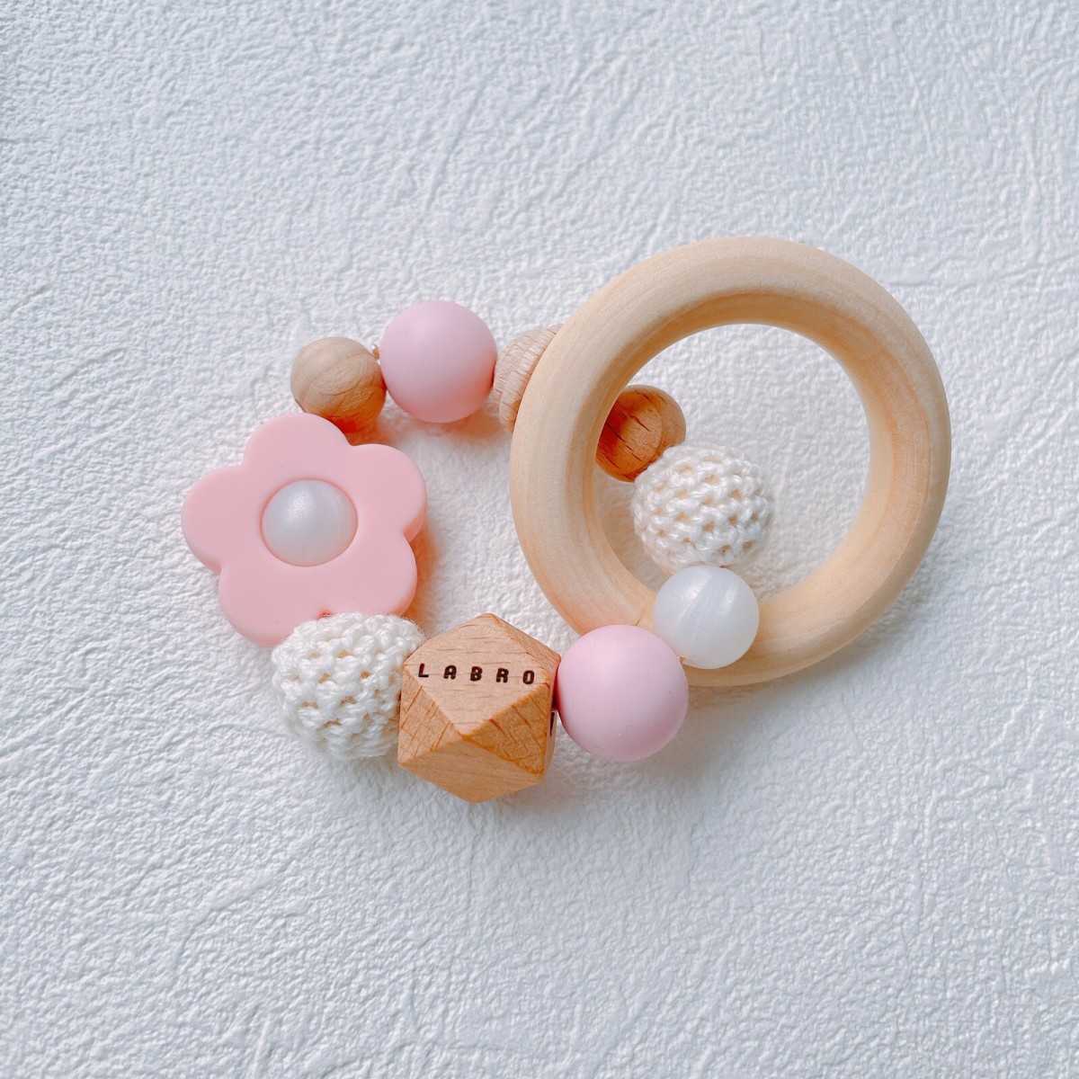 LABRO 木製おもちゃ ボール 歯固め 木のおもちゃ 花 フラワー ウッドxシ...