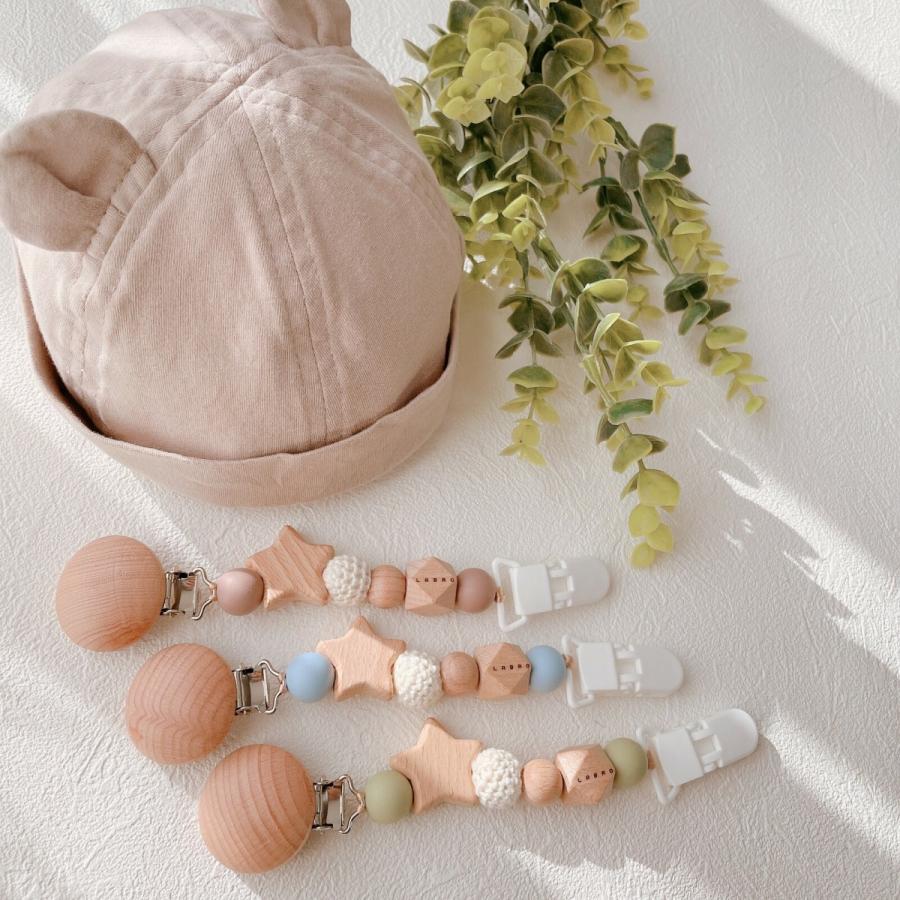 LABRO 赤ちゃんの帽子クリップ 帽子留め ベビー 星モチーフ シリコン 木製...