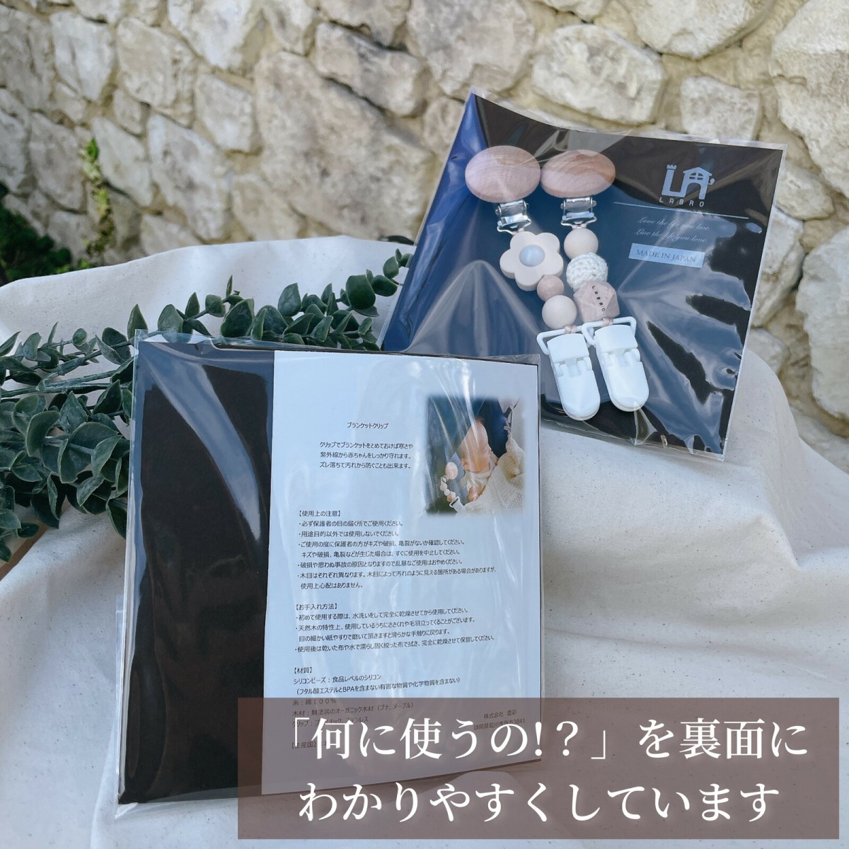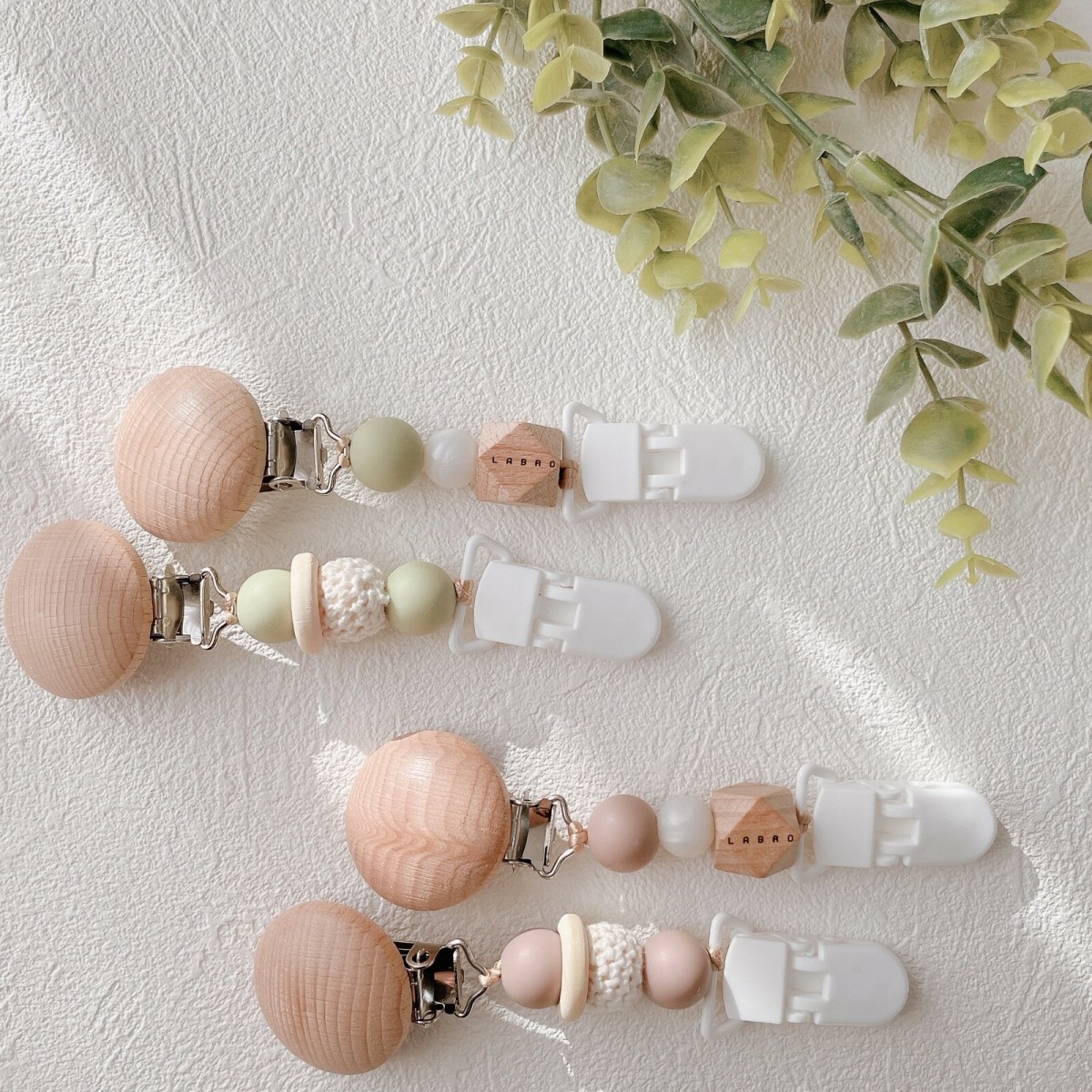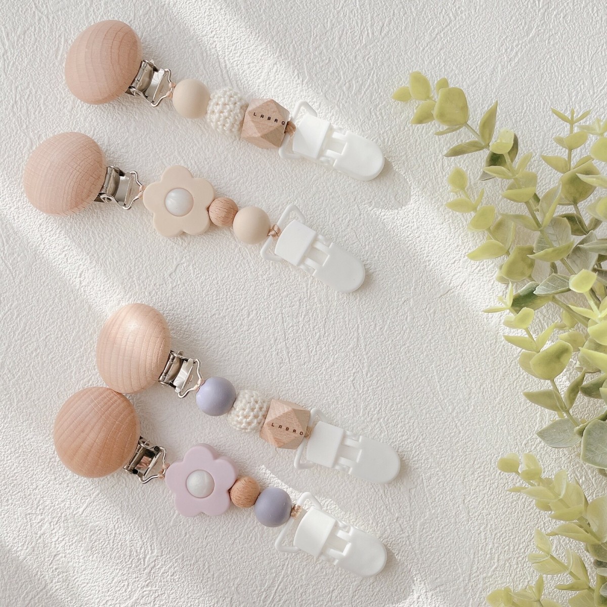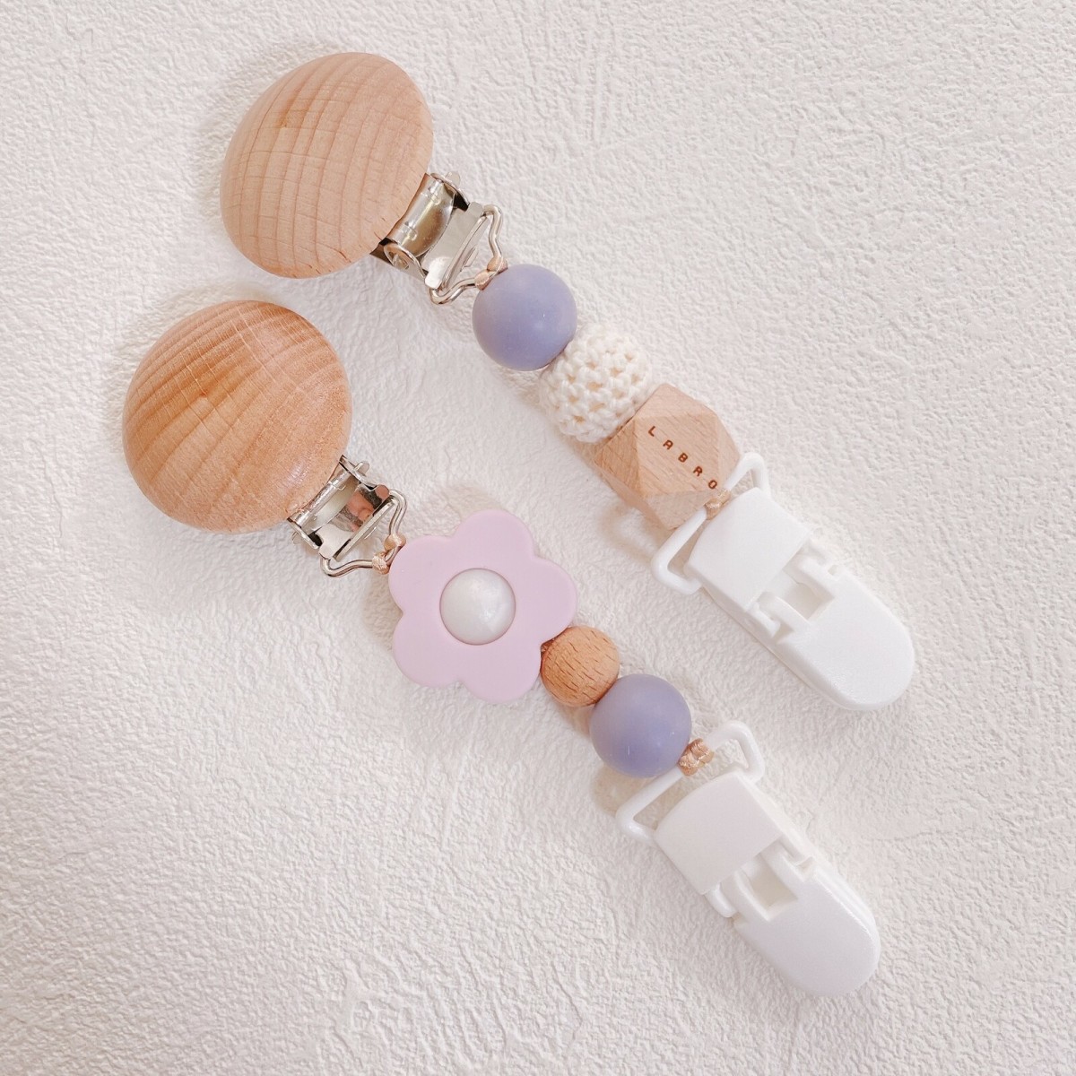 LABRO ブランケットクリップ フラワーモチーフ 花柄 ノーマル ビーズ 2個ペア 木製 シリコン ベビー 赤ちゃん 出産準備