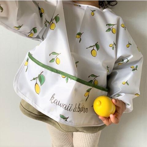 kawaii&born レモン柄 長袖エプロン お食事エプロン 離乳食 ベビー ...