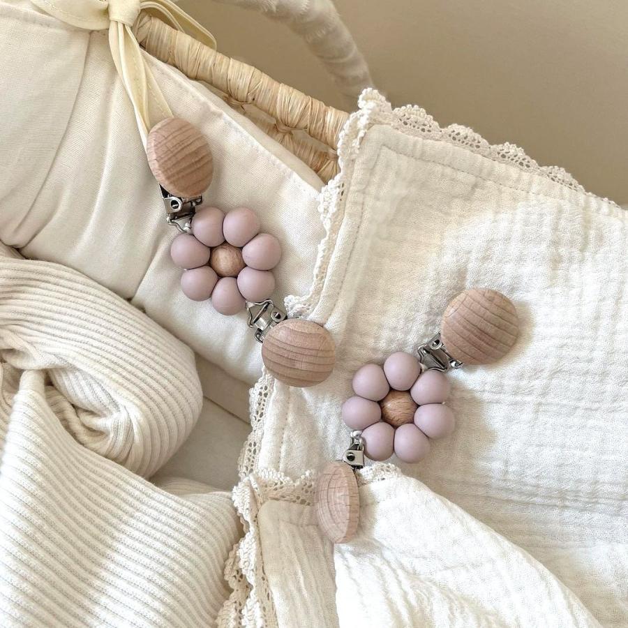 ブランケットクリップ お花 ベビーカー シリコンビーズ 木製 ベビー雑貨 育児用...