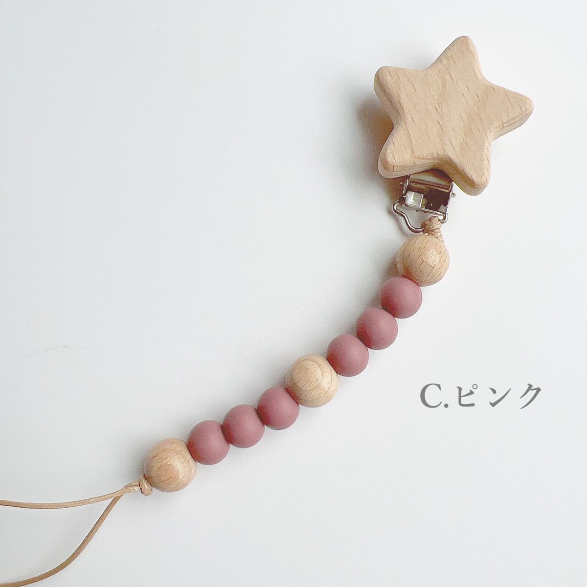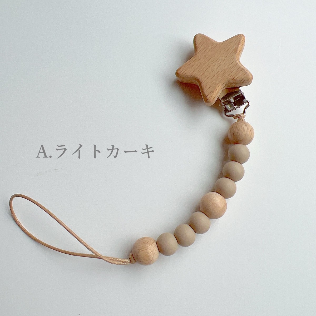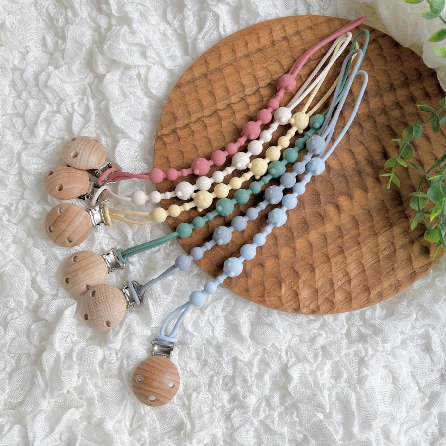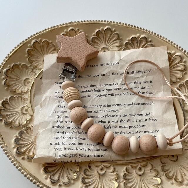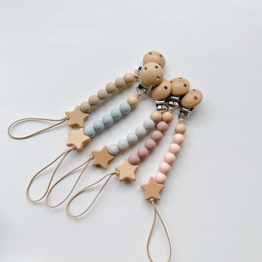 くすみビーズとホシ おしゃぶりホルダー トイホルダー ストラップ 木製 おもちゃ...