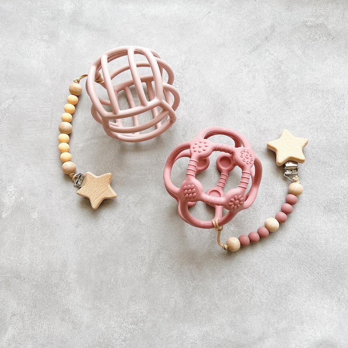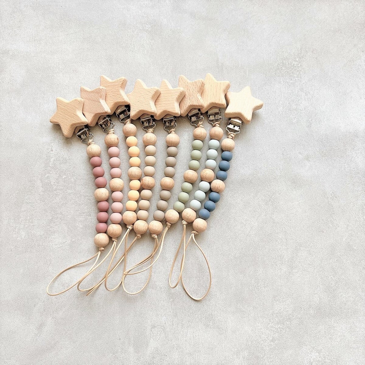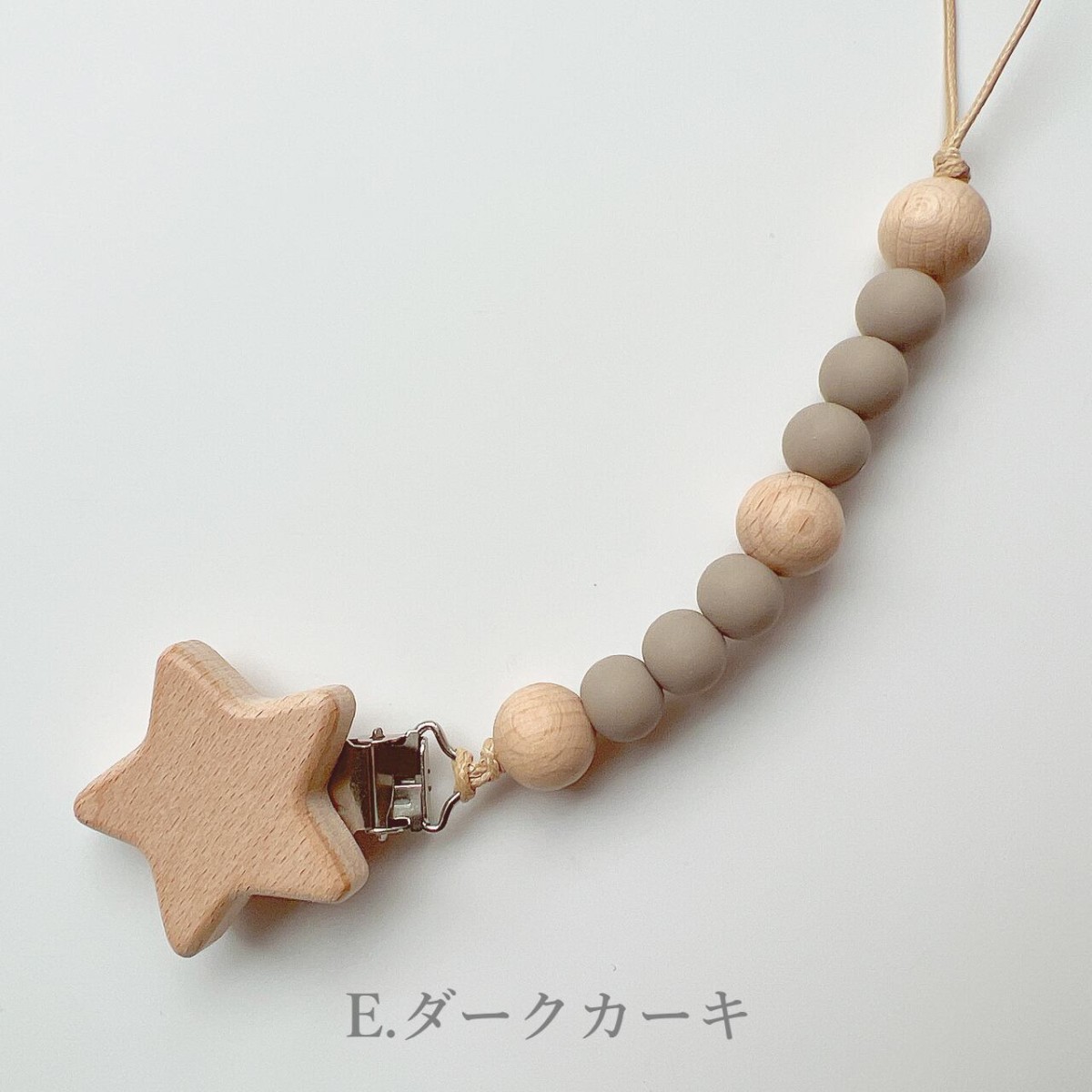 くすみビーズとホシ おしゃぶりホルダー トイホルダー ストラップ 木製 おもちゃ...