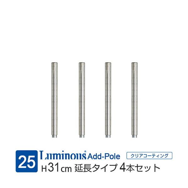 ルミナス ラック パーツ ポール 延長ポール 4本 ポール径25mm 収納棚 スチールラック 柱 収納 棚 スチール棚 業務用 メタル レギュラー 高さ31cm ADD-P2530